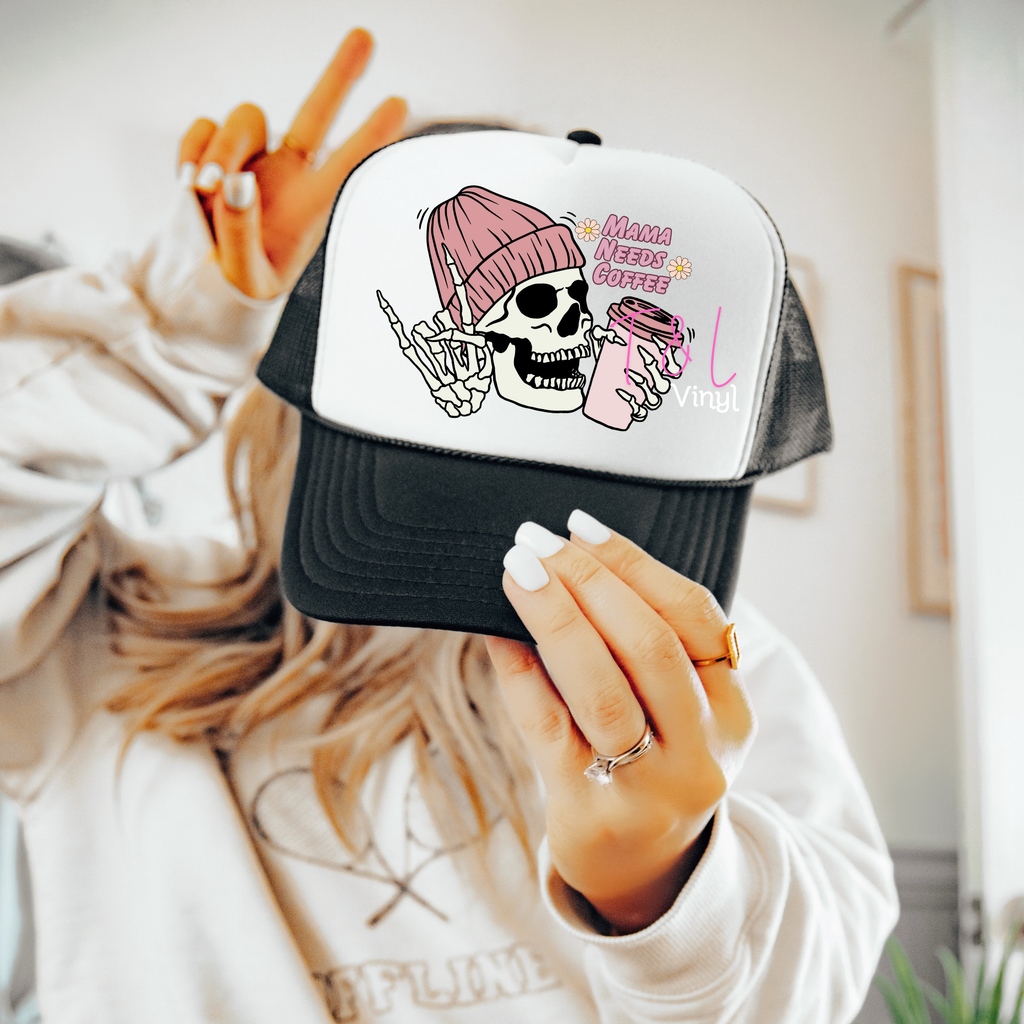 1188 DTF Mama needs Coffee Trucker Hat Print