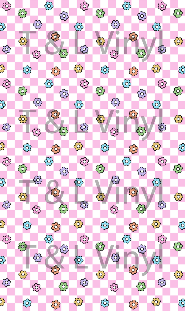 608 Pink flowers Checkers Sublimation prints